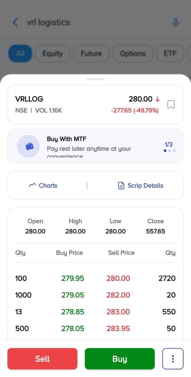 Emkay Global downgraded VRL Logistics to 'Add' from 'Buy', with a revised June 2026 target price of Rs 600.VRL Logistics Ltd shares turned ex-bonus in the ratio of 1:1 on Thursday, August 14. Adjusted of bonus issue, the VRL Logistics stock opened 0.41 per cent lower at Rs 280 on NSE. It was, however, down 49.79 per cent over yesterday's closing price (unadjusted) of Rs 557.65. It is possible that trading apps of certain brokerages might be showing the unadjusted VRL Logistics price for yesterday and, thus, suggesting a 50 per cent-plus fall on the counter.