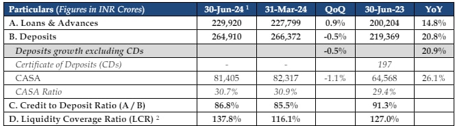 Credit to deposit ratio came in at 86.8 per cent against 85.5 per cent in March and 91.3 per cent in the year-ago quarter. The liquidity coverage ratio stood at 137.8 per cent against 116.1 per cent in March and 127 per cent in the year-ago quarter.