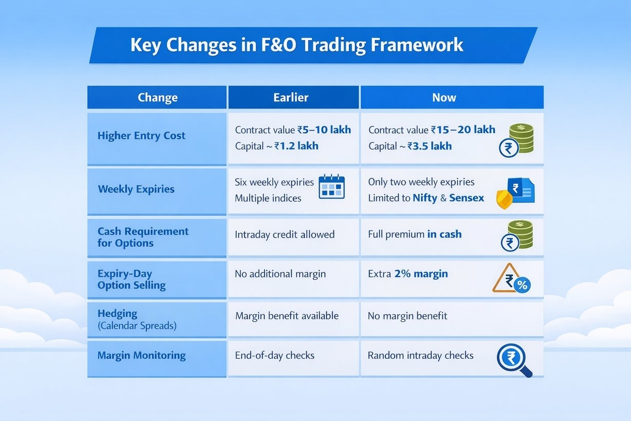 One of the most significant shifts has been the sharp rise in entry costs. Earlier, traders could take positions in contracts valued at ₹5–10 lakh with capital of around ₹1.2 lakh. Now, typical contract values have climbed to ₹15–20 lakh, pushing the capital requirement to roughly ₹3.5 lakh. According to Kaushik, trading a single lot now requires nearly three times more money than before.