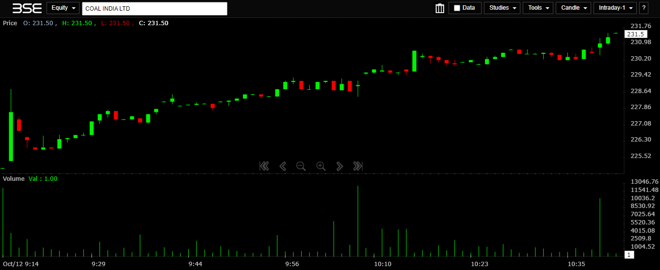 Shares of Coal India rose 2.49 per cent to trade at Rs 230.95 in late morning deals.