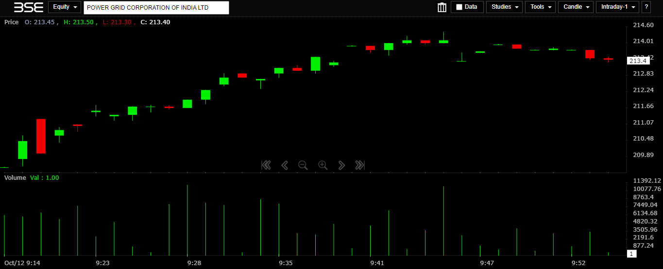 Shares of PowerGrid rose 2.45 per cent to trade at Rs 213.40 in early trade.