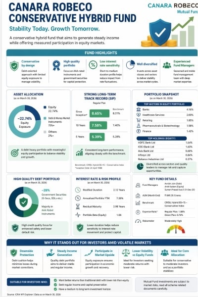 Performance-wise, the fund has demonstrated consistency over longer horizons. Its since-inception SIP return stands at 8.65%, with 10-year SIP returns of around 7.58%.Mutual funds: At a time when markets are oscillating between sharp corrections and short-lived rallies, investors are increasingly shifting focus from pure return chasing to capital protection and consistency. In this context, conservative hybrid funds, designed to balance income generation with limited equity participation, are back in the spotlight. Among them, the Canara Robeco Conservative Hybrid Fund (CRCHF) stands out for its disciplined construction and risk-aware approach.
