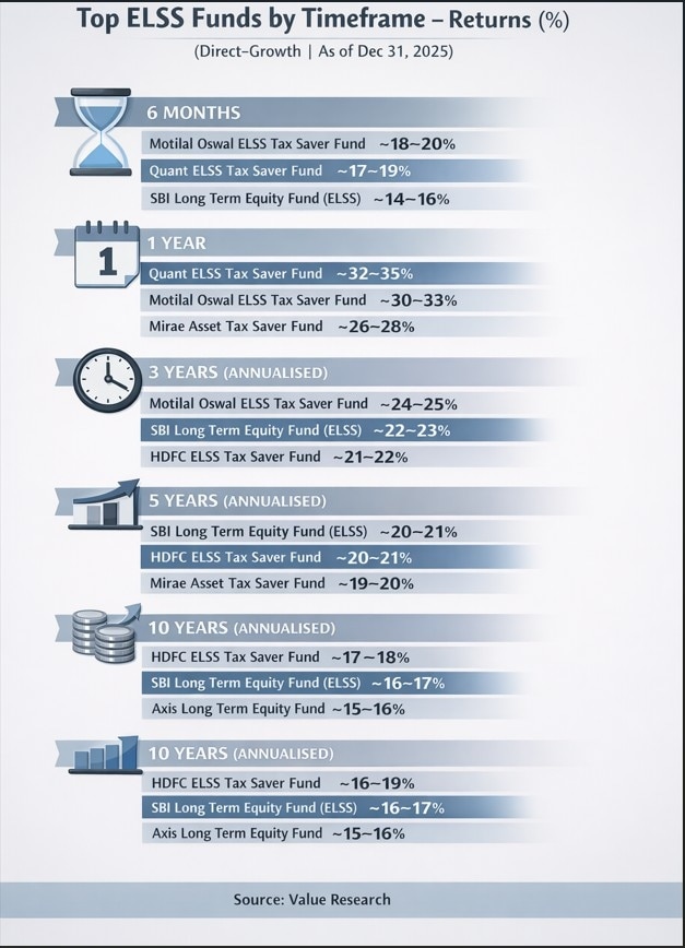 Performance patterns across ELSS funds further reinforce DSP’s argument. Short-term returns, covering six months to one year, have been dominated by relatively aggressive, high-conviction funds such as Motilal Oswal ELSS and Quant ELSS, which benefited from concentrated portfolios and faster sector rotation during recent market rallies. However, these strategies can also exhibit higher volatility.