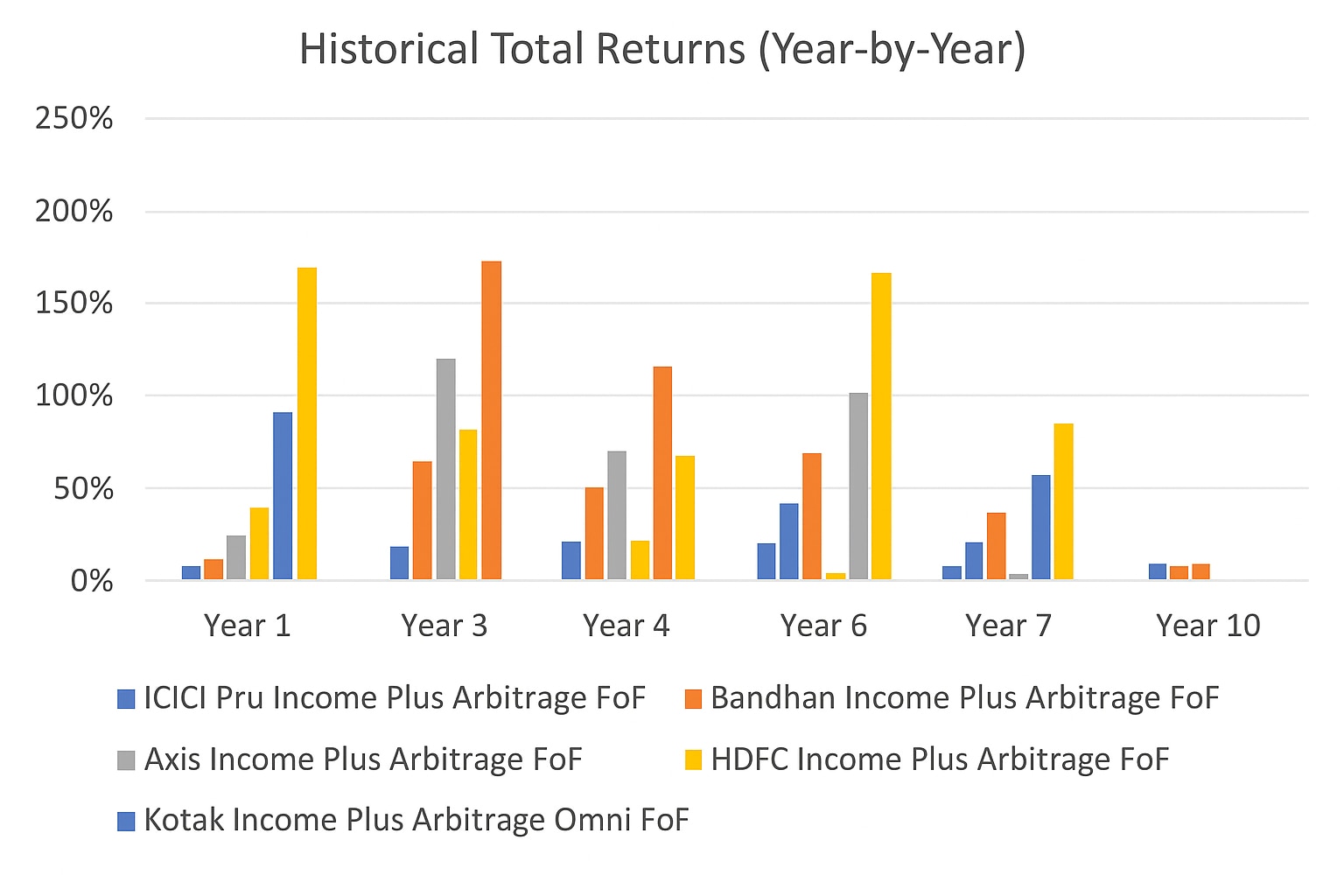 Longer track records—particularly those of ICICI Prudential and Bandhan—show 10-year stability, making these funds suitable for conservative and short-term allocation strategies. Year-by-year trends indicate very few drawdowns, even during high volatility, with performance rankings usually in the second to third quartile. Certain schemes, including ICICI Prudential and HDFC, periodically move into the top quartile when arbitrage spreads widen or bond yields turn favourable.