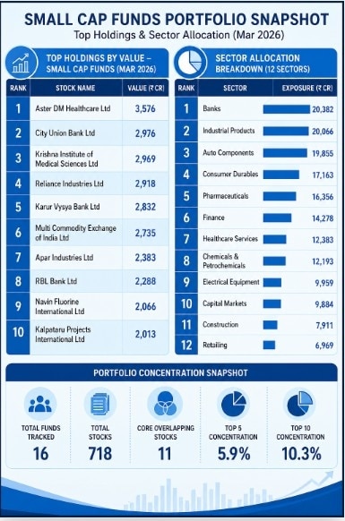 Latest portfolio disclosures from 16 tracked small-cap funds for March 2026 offer a clearer view of how fund managers are positioning amid this rebound. The data points to a well-diversified allocation strategy, with no excessive concentration in any single theme or sector.