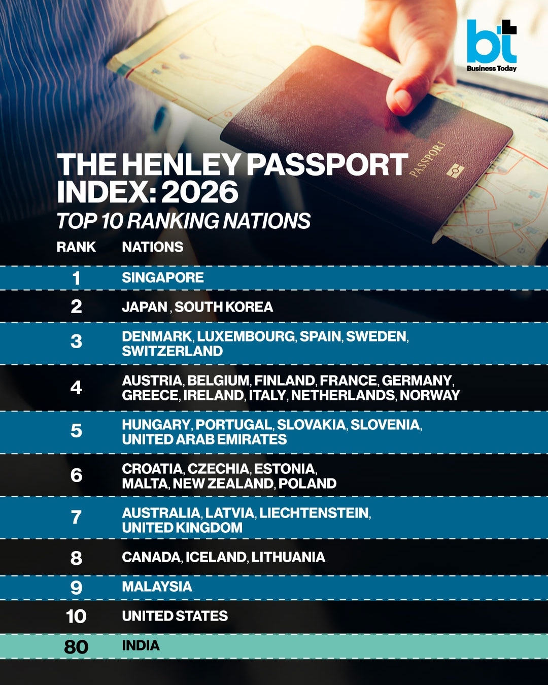 Indian passport ranking improves in Henley Index, returns to 80th positionIndia’s passport has moved up the global mobility ladder, climbing five places to rank 80th in the latest Henley Passport Index. Indian passport holders can now travel visa-free or obtain a visa on arrival in 55 destinations, reflecting a modest improvement in international access.