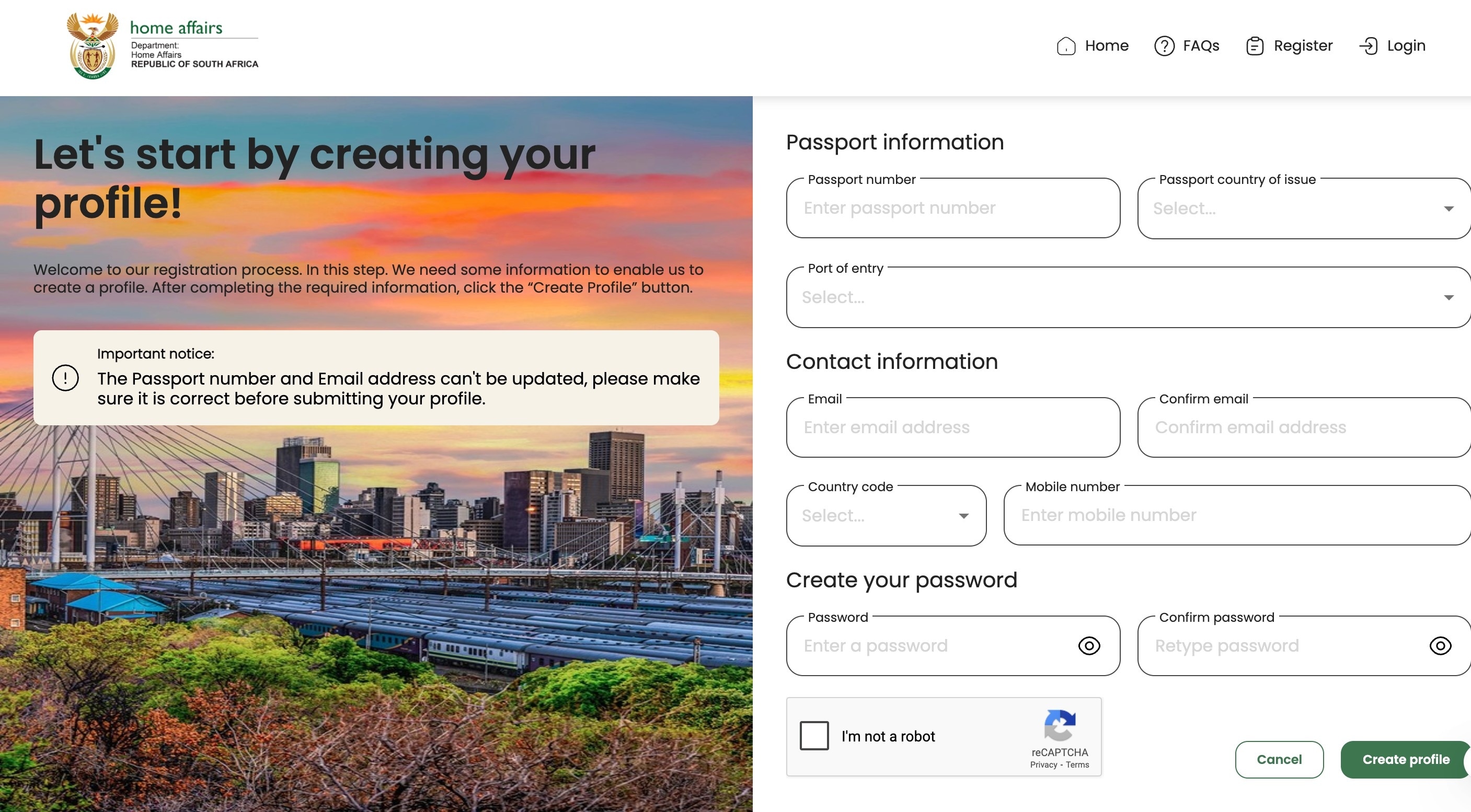 The official portal describes a fully digital workflow. Travellers must first create a personal profile with: