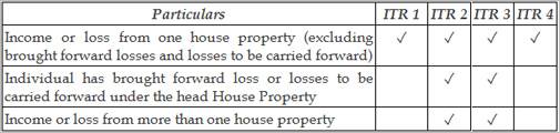 Income from house property can be reported in ITR 1 to 4 in accordance with the following table.