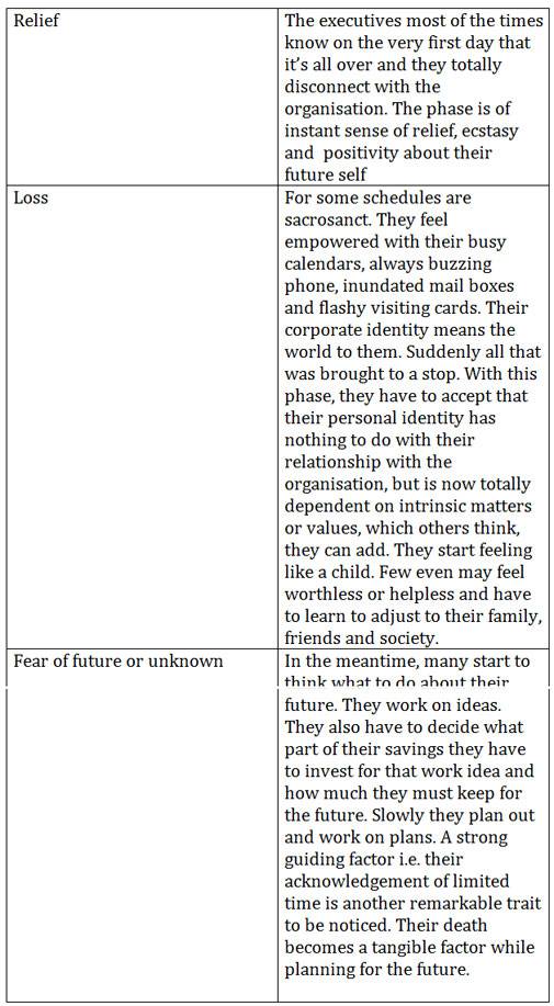 When my discussions became more elaborate with these CXOs, I realised that the same set of feelings morphed with course of time. The timing or the duration of these dominant feelings differed with person to person. One or two layers also did not exist in few.