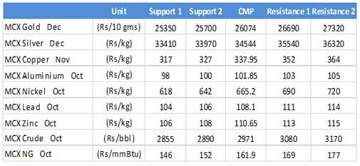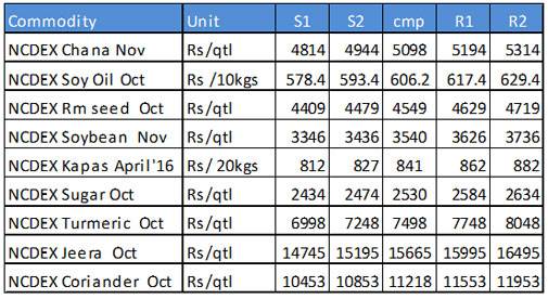 We expect cotton to trade lower as the new season crop hit the market. However, there is a possibility of increasing in export demand this season, which may keep the pries above the last year's prices. While sugar may, trade with positive bias on reports of bad weather and fuel process increase in Brazil coupled with improved domestic demand.