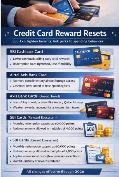 Additionally, cards like the Airtel Axis Bank Credit Card have seen the removal of complimentary airport lounge access and a shift towards spend-linked cashback, increasing the threshold required to unlock full benefits.