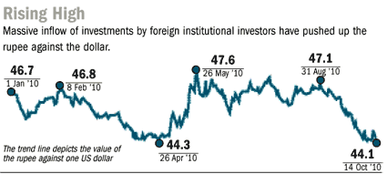 By 14 October, it had risen by 5.4 per cent to close at Rs 44.10 against the dollar. The last time it was near this level was in August 2008. Will the rupee's growth be beneficial for us? Is it a harbinger of good times or ominous ones? This will depend on which side of the fence you are.