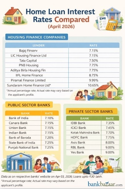 Data from banks and housing finance companies show that HDFC Bank’s home loan rates remain broadly competitive. Among public sector banks, rates range between 7.10% and 7.25%, with State Bank of India and Punjab National Bank at the higher end of this band.