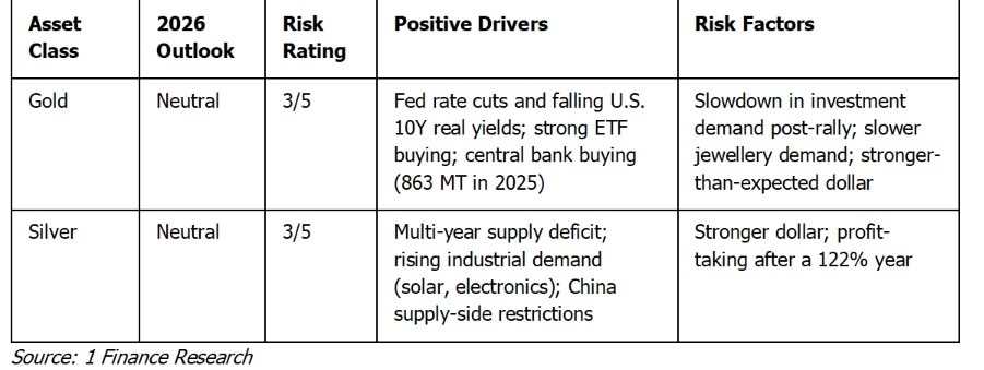 Tactical exposure: Silver can be considered a higher-volatility satellite position. While industrial demand and supply tightness support the long-term case, price swings are likely, making position sizing critical.