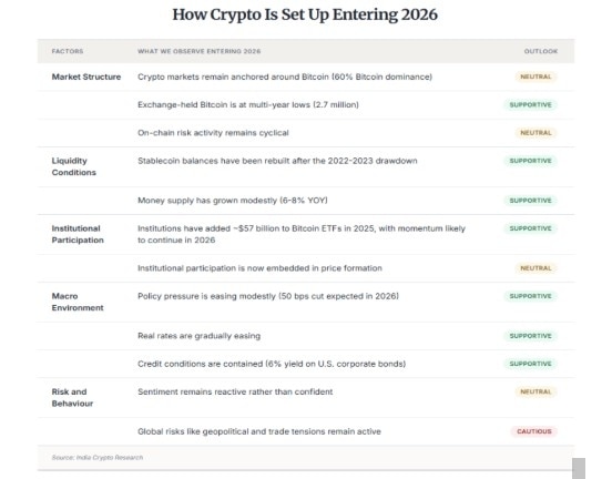 Taken together, Mashru said the current setup points toward gradual, measured growth in crypto markets rather than explosive rallies. Improving liquidity conditions, increasing institutional participation and tightening Bitcoin supply could support prices, but participation is likely to remain selective as investors navigate macroeconomic uncertainties.