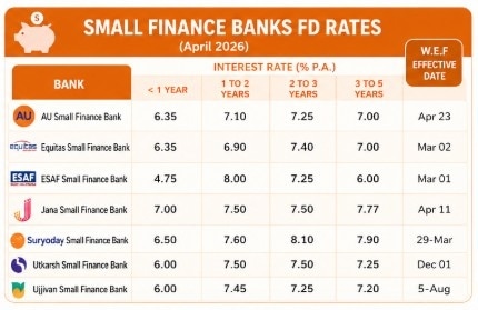 Other players such as Ujjivan Small Finance Bank (up to 7.45%) and AU Small Finance Bank (up to 7.25%) also remain competitive, making this category particularly appealing for yield-seeking investors. However, financial advisors typically recommend evaluating credit risk and deposit insurance limits before investing in smaller institutions.