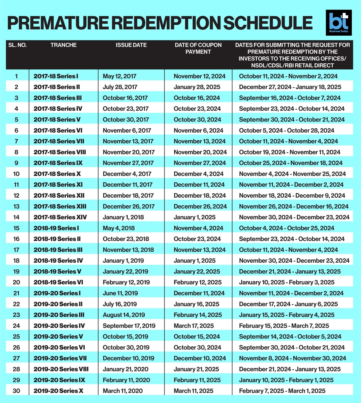 The RBI has recently disclosed the timeline for the early redemption of sovereign gold bonds (SGB) that were issued from May 2017 to May 2020. Per the RBI's outlined schedule, a total of 30 SGBs are scheduled for redemption, commencing on October 11 and concluding on February 7, 2025. The redemption value of these bonds will be decided by the RBI, factoring in the average gold price observed in the three days leading up to the maturity date.