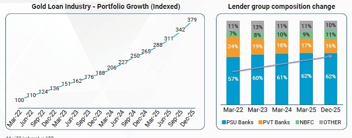 A key highlight of this growth is the sharp increase in borrower leverage. The average outstanding per borrower has risen from ₹1.9 lakh to ₹3.1 lakh, while the average ticket size has more than doubled to nearly ₹2 lakh. This indicates that borrowers are not only opting for gold loans more frequently but are also taking larger loans against their pledged gold.