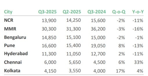 Residential inventory remained largely stable at 5,61,750 units, unchanged from both Q2 2025 and Q3 2024, signalling a more disciplined supply environment. Gurgaon stood out as one of the strongest-performing markets. Saransh Trehan, Managing Director, Trehan Group, said the city has evolved into a “modern real estate powerhouse,” with growing demand in corridors such as SPR, New Gurgaon and Sohna. With rising incomes, improved connectivity and growing preference for secure communities, he expects steady expansion heading into 2026.