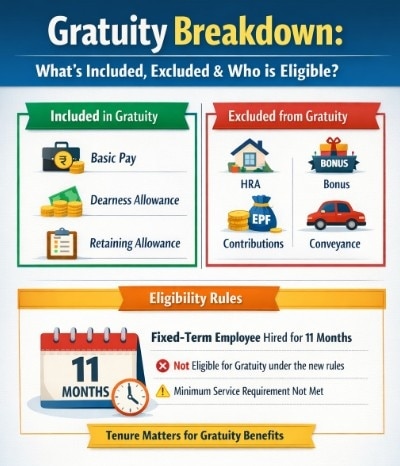 However, eligibility rules remain strict. A fixed-term employee hired for 11 months will not qualify for gratuity under the new framework, as the minimum service requirement is not met. This highlights the importance of tenure in determining gratuity benefits.