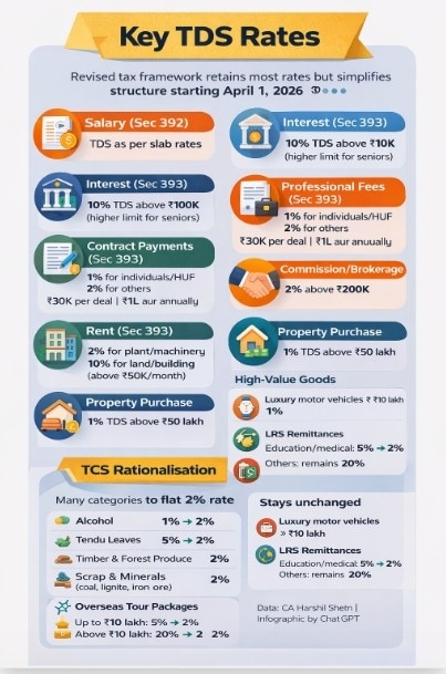 A key highlight flagged by Sheth is the rationalisation of TCS rates, with several categories converging to a 2% rate from April 2026: