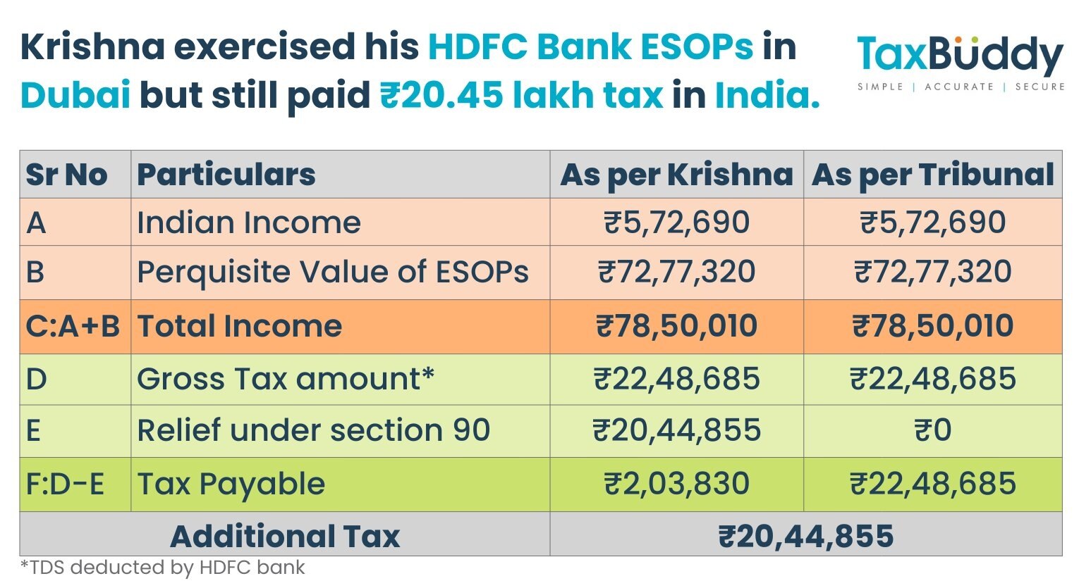 However, the tax treatment of ESOPs becomes complex when employees move across borders. Tax advisory platform Tax Buddy recently highlighted the case of Krishna, an HDFC Bank employee who found himself in the middle of a taxation dispute after exercising ESOPs while living outside India. Despite arguing that his stock option income should be exempt in India as he was a UAE resident at the time of exercise, the tax authorities ruled otherwise—and the Tribunal upheld the decision, resulting in a tax liability of ₹20.45 lakh.