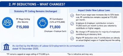 “As a result, there is no change in take-home salary for employees contributing at this statutory limit. An increase in PF deduction would arise only where contributions are already being made on actual (higher) wages, or where the employer and employee opt to contribute beyond the statutory ceiling.”