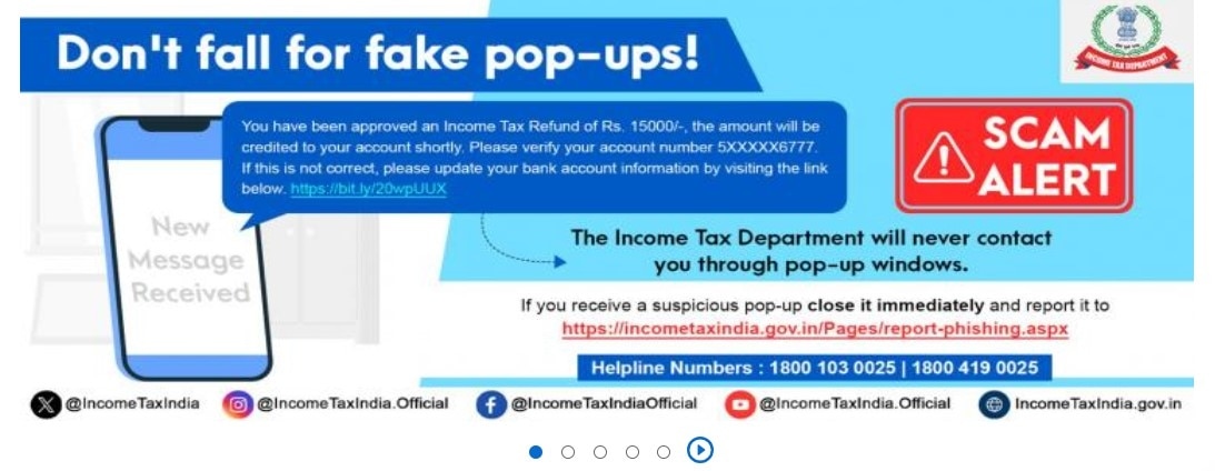 The Income Department has issued a cautionary advisory to the public, advising against interacting with or clicking on any hyperlinks purporting to offer income tax refunds. In addition, individuals are urged not to disclose any One-Time Passwords (OTPs), PAN card details, or other pertinent information over the phone. The Cyber Cell has reinforced this message by alerting users to exercise vigilance with regards to messages related to Income Tax Returns (ITR). As per reports from cybercrime authorities, this signifies a novel strategy utilized in bank fraud schemes that necessitates attention. They have emphasized the necessity of disseminating this warning to associates and acquaintances for increased awareness and prevention.