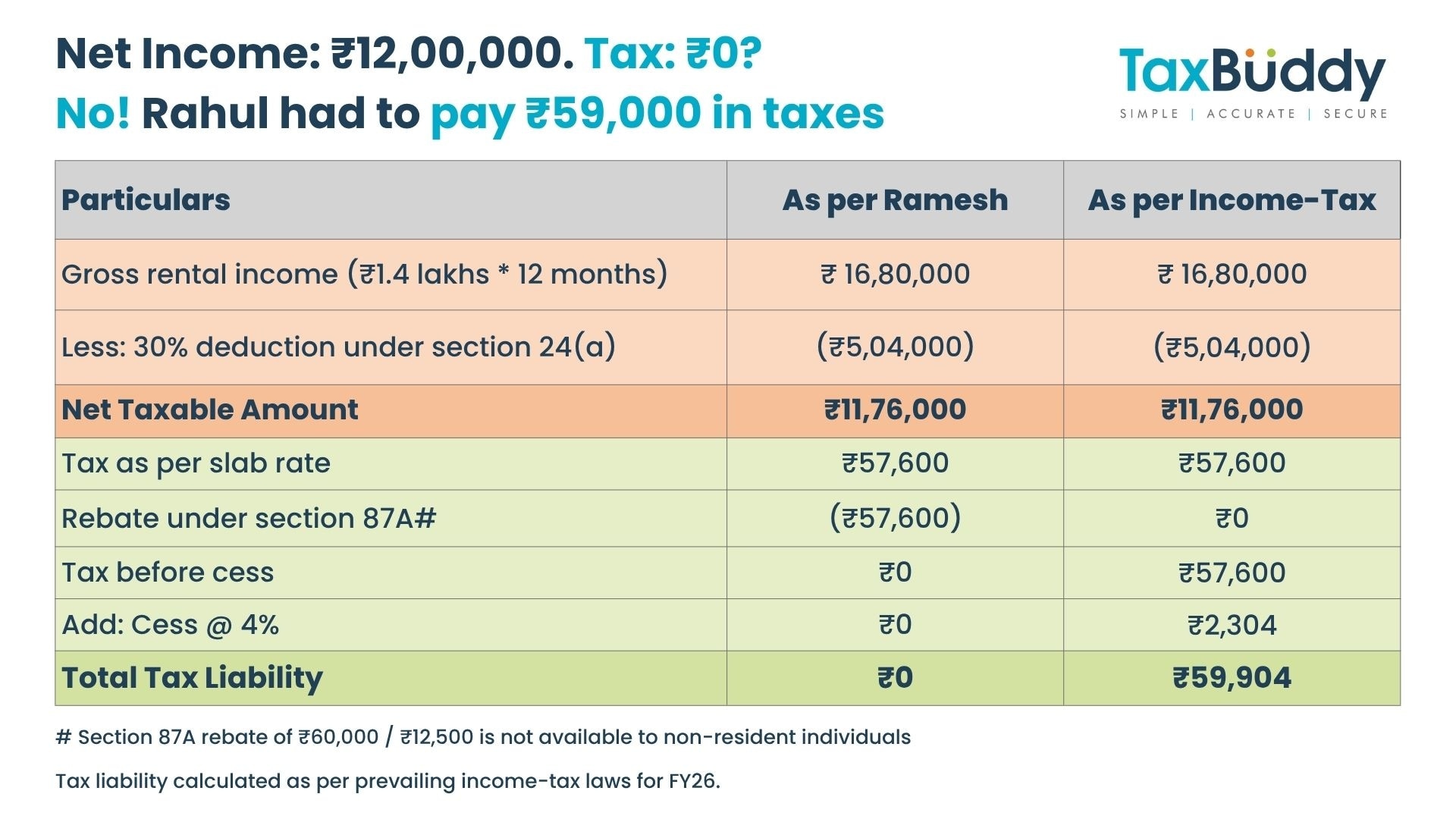 According to TaxBuddy, a digital tax filing platform, NRIs must tread carefully to avoid unexpected tax bills. Citing a recent case, TaxBuddy explained how Rahul, an NRI, assumed that since his net income after deductions was under Rs 12 lakh, he owed no tax. However, he faced a tax demand of Rs 59,904 due to incorrect assumptions and a lack of clarity about NRI-specific rules.