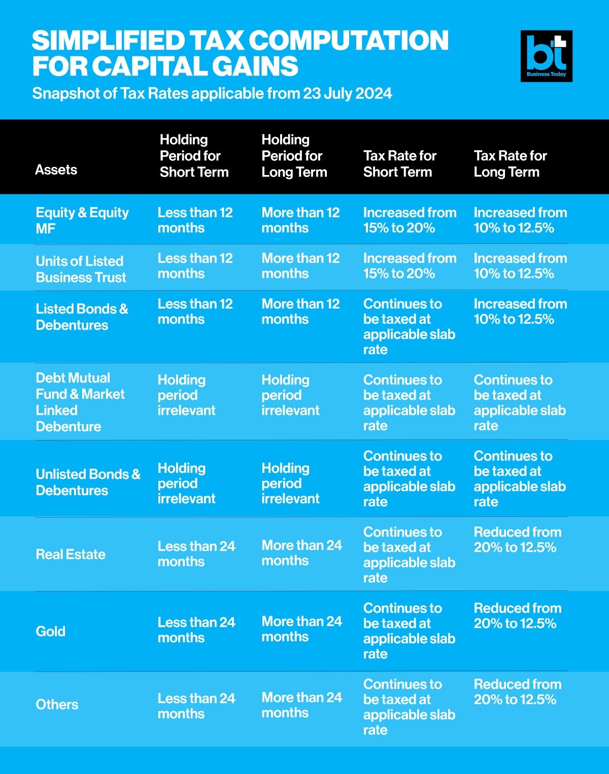 Snapshot of Tax Rates applicable from 23 July 2024