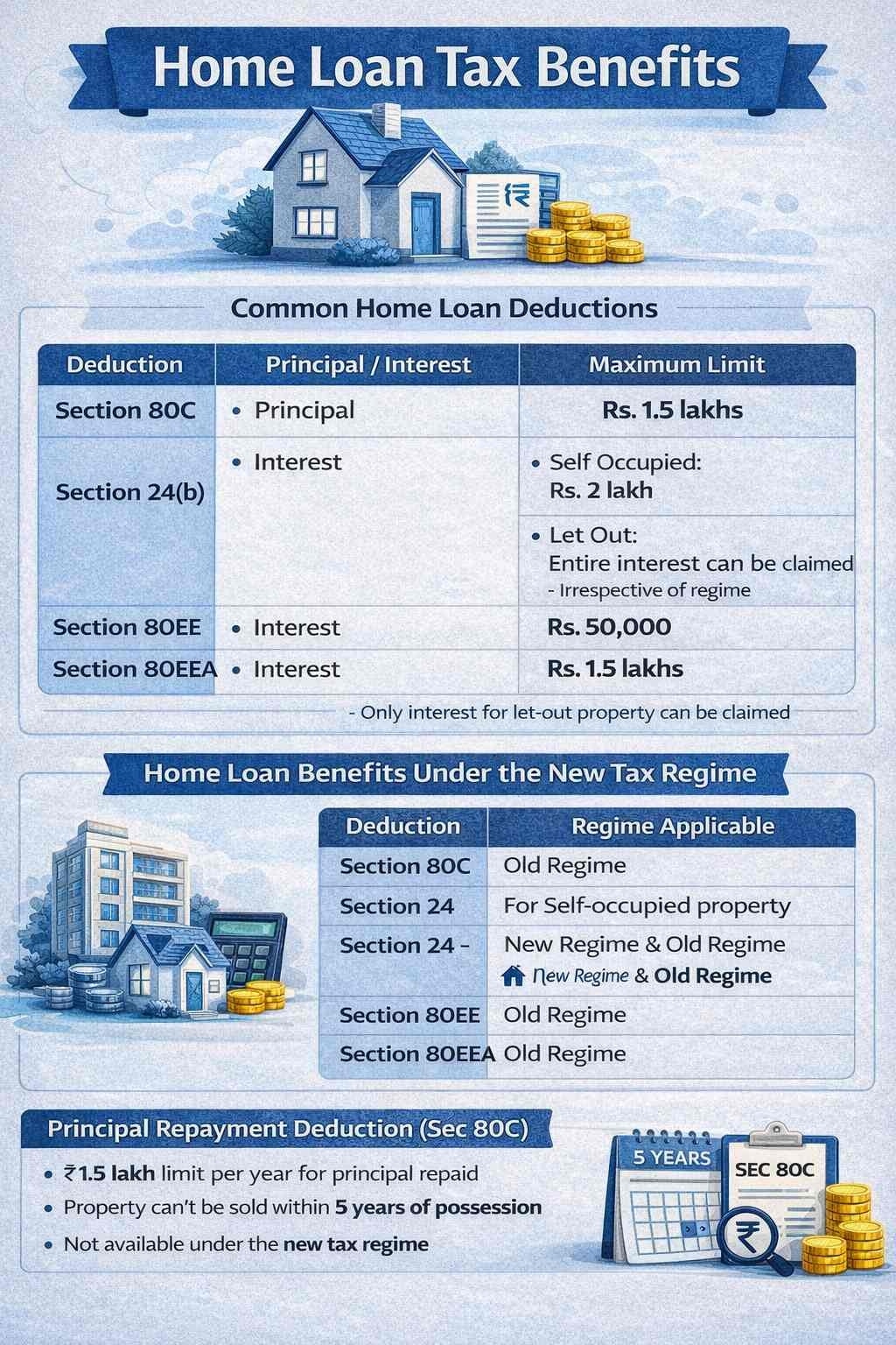 Under the new tax regime (Section 115BAC), most home loan deductions are withdrawn. Only interest on loans for let-out properties can be claimed, making the choice of tax regime crucial for homeowners.