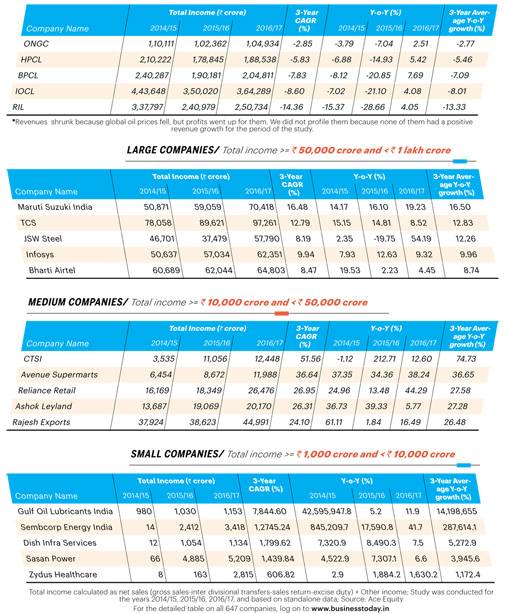 The top five companies in each category