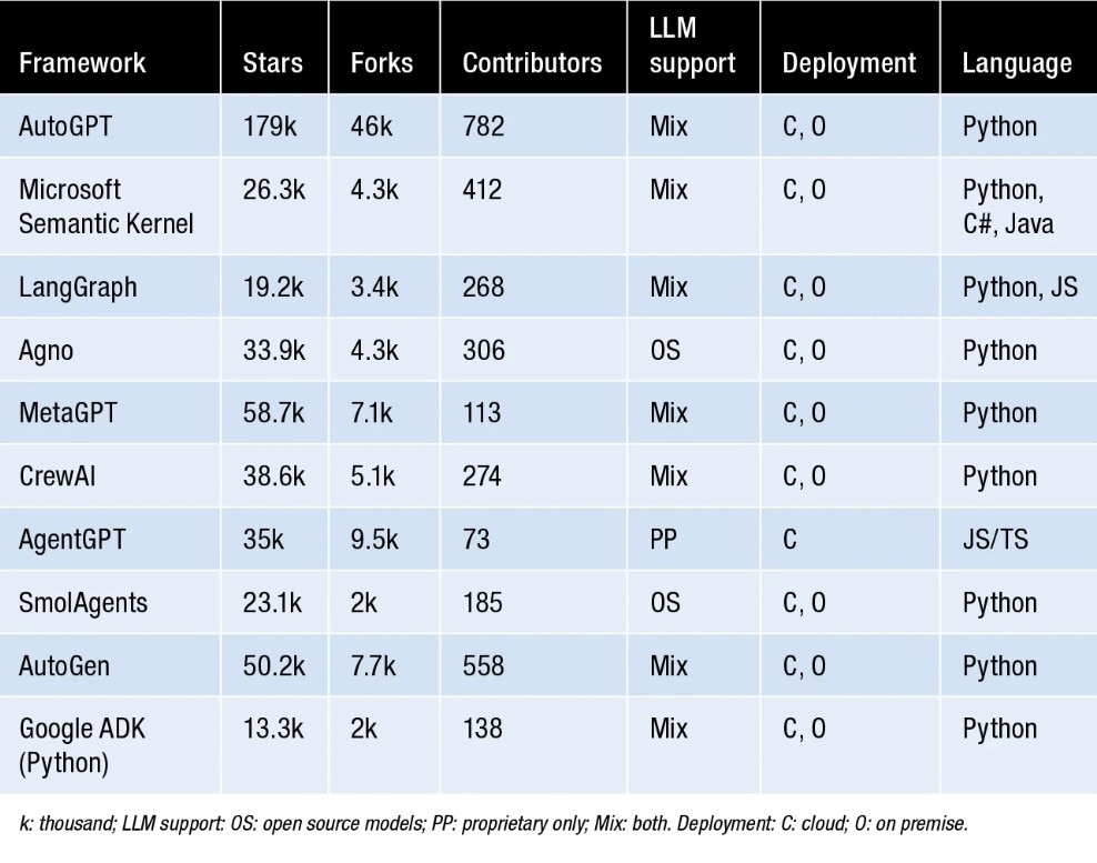 The study also looked at developer adoption. Several open-source projects have attracted tens of thousands of contributors and followers, while newer frameworks are gaining popularity quickly.