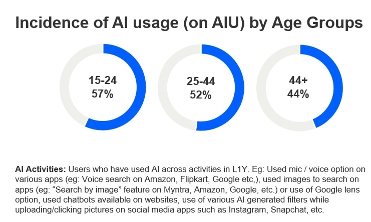 AI is gaining widespread traction, with 44% of users engaging with AI-enabled features such as voice search, image-based search, chatbots and AI filters.