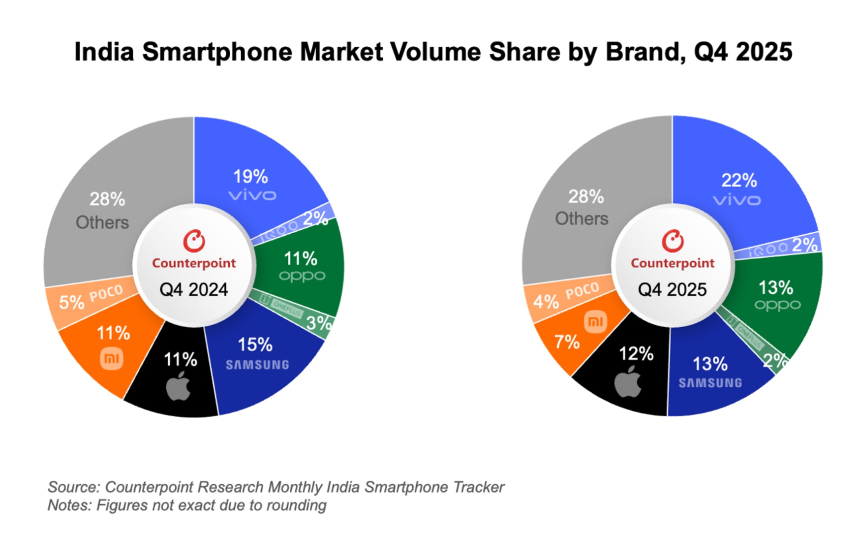 Nothing itself was the fastest-growing OEM in Q4 2025, posting 32% YoY volume growth, thanks to its growing offline retail presence. The brand is also stepping up investments in India, in line with the ‘Make in India’ initiative, to localise smartphone production, along with soon opening its own flagship store in Bengaluru.