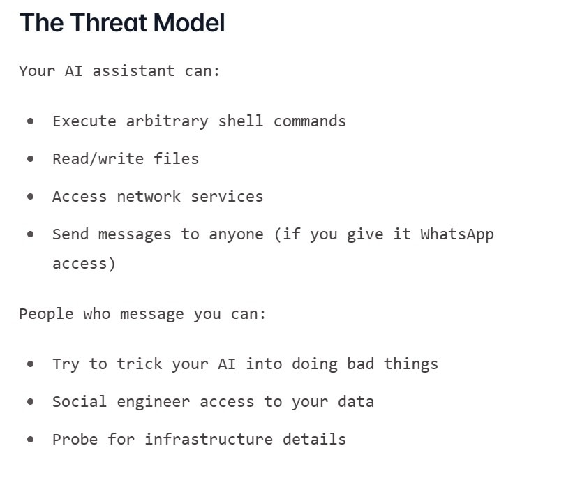 Steinberger is explicit in OpenClaw’s documentation that running an AI agent this close to the operating system comes with serious implications. A single ambiguous instruction or poorly scoped task can have lasting consequences.