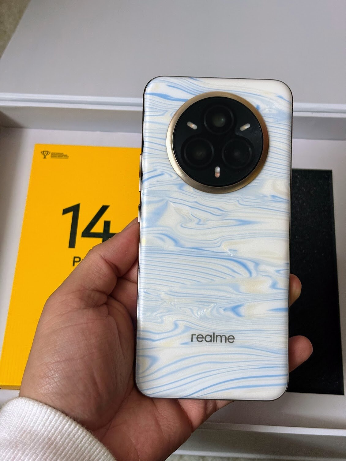 The Realme 14 Pro+ introduces a unique temperature-sensitive, colour-changing rear panel, exclusive to its white variant. When exposed to temperatures below 16°C, the panel undergoes a transformation, revealing stunning blue waves that create a pearl-like effect. Fortunately, Delhi’s winter chill provided the perfect conditions to test this feature, and the colour change added an eye-catching touch to the phone’s design.