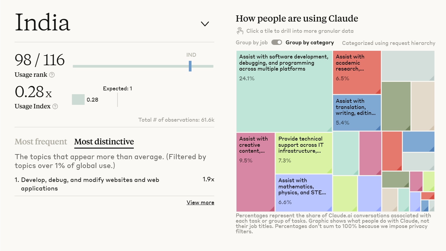 In India, web development usage is 1.9 times higher, while resume and job application support is 1.8 times higher, according to Anthropic’s latest Economic Index report.
