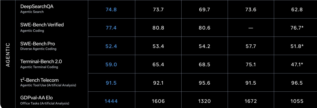 In terms of benchmark, Musk Spark has achieved 42.1% on HealthBench Hard, which is slightly higher than GPT 5.4, but way ahead of other models like Gemini 3.1 Pro. On DeepSearchQA, the model scored 74.8%, placing it ahead of some competitors but slightly behind the top performers. In SWE-Bench Verified, it achieves 77.4%, close to leading scores in the low 80s range. For the more challenging SWE-Bench Pro, it records 52.4, again trailing slightly behind the best score of 57.7.