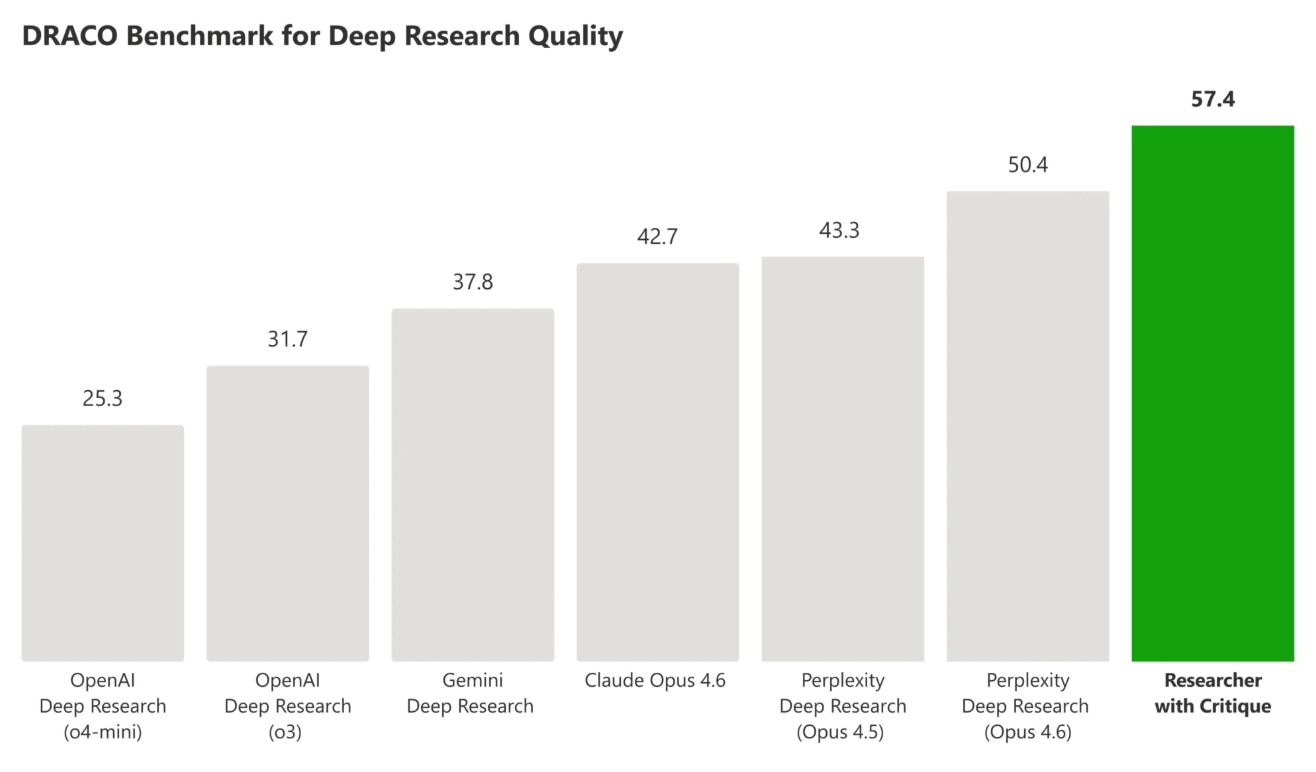 One model takes on the generation phase and creates the first draft, whereas the second model reviews it and provides refinements. Therefore, it separates writing from checking for improved results. In the DRACO benchmark, which measures accuracy, completeness, and objectivity in research, the Researcher scores 13.8% higher.