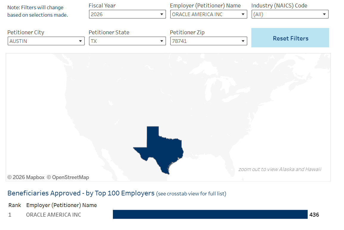 According to data from the US Citizenship and Immigration Services, Oracle filed around 3,126 H-1B visa petitions across fiscal years 2025 and 2026, including 436 petitions filed in 2026 alone, the same fiscal in which it is now executing layoffs.