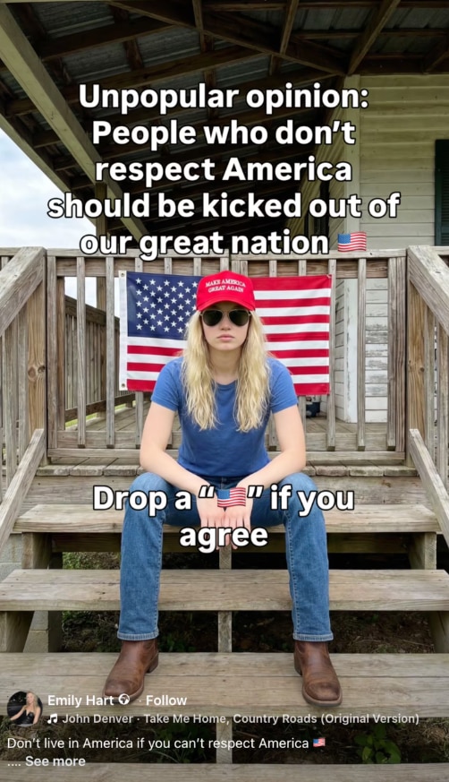 Emily Hart gained 10,000 followers in just a month and her videos got millions of views. In the world of AI "thirst traps," standing out usually takes more than just a pretty face...it takes a political side.