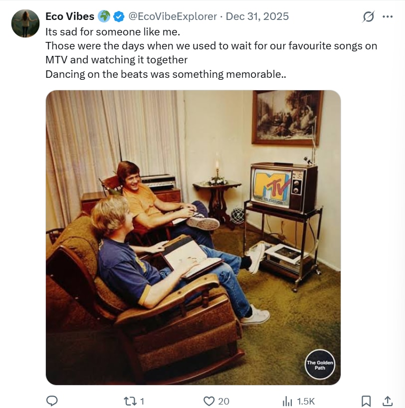 "It's sad for someone like me. Those were the days when we used to wait for our favourite songs on MTV and watching it together. Dancing on the beats was something memorable," a fourth user weighed in.