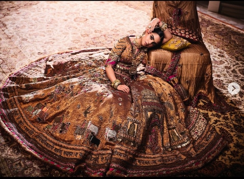 Isha Ambani-Piramal also upped the fashion game in the Shiv Shakti Puja organised by the Ambani family. Isha wore a rust-maroon lehenga designed by a Delhi-based designer house Delhi Vintage Co. She accessorised her look with a statement golden necklace, earrings and bracelets.