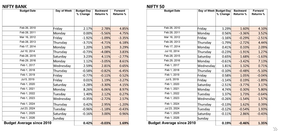 The widely tracked banking benchmark Nifty Bank delivered an average return of 0.42 per cent on Budget days over the same period, data showed.