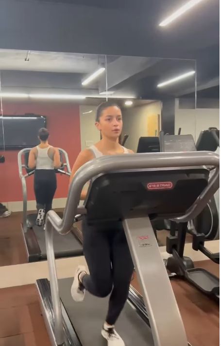 Running in controlled rhythm, Alia isn’t chasing speed—she’s building aerobic power, the silent foundation behind stamina, recovery, and that trademark on-screen energy.