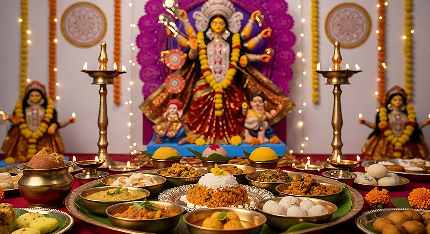 Phuchkas are more than snacks—they’re ritual. That crackle, that gush of tamarind water, that spicy potato mash—it’s chaos and harmony in a single bite. No Puja feels complete without sticky fingers and satisfied smiles.