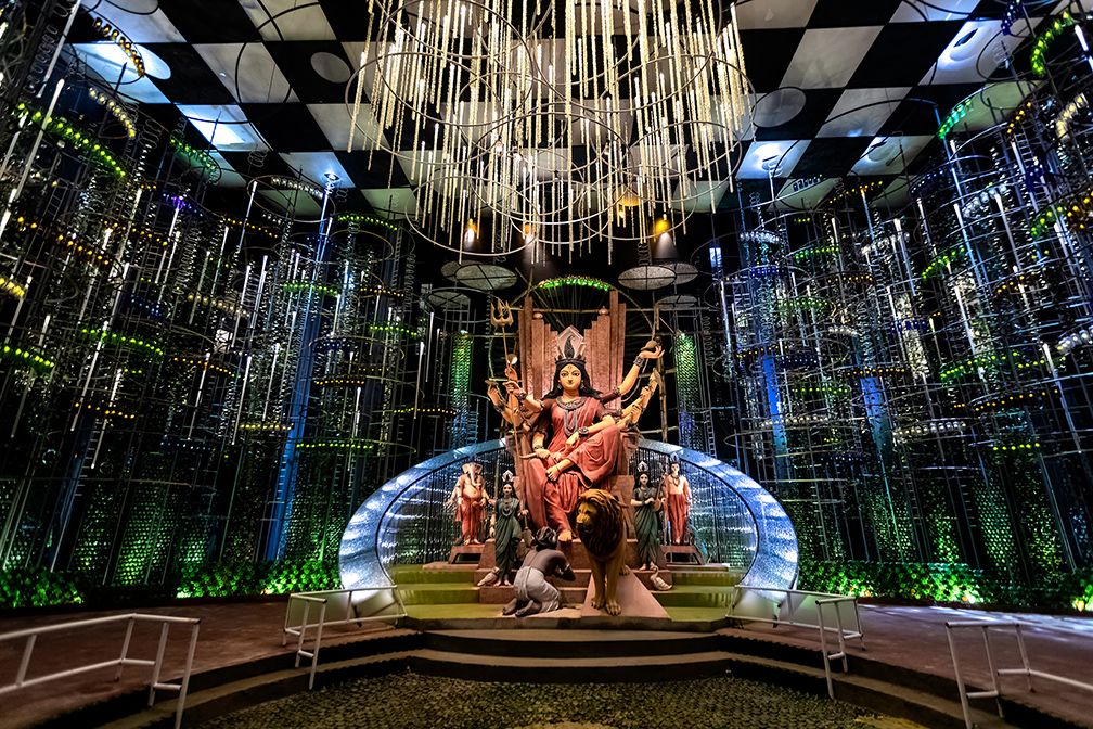 Nalin Sarkar Street leans into fantasy—cartoon temples, surreal sculptures, or nostalgic scenes. It’s puja with a playful twist that never misses.