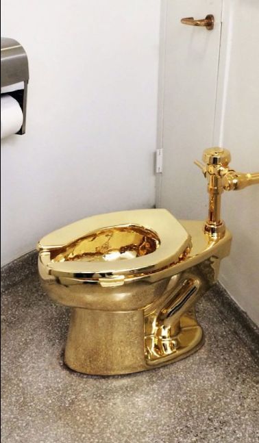 Cattelan’s twin golden toilet—stolen from Blenheim Palace, Churchill’s birthplace—remains missing, with investigators suspecting it was melted down in a scheme straight out of a heist film.